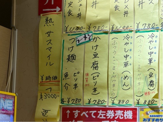 とある場所にある飲食メニュー